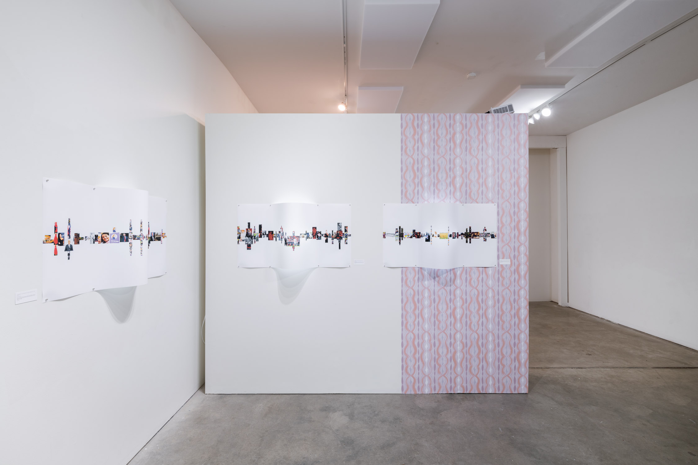 The art and design duo Midgray (Kris Blackmore and Simon Boas), with artist Pat Boas, presents new bodies of work that reflect on the cyclical nature of repression, resilience, and resignation. Approaching these themes through seemingly distinct mediums, the artists examine the floods of information that have swept us into this particular cultural and political moment. Together they question how we can imagine alternatives as we struggle to keep our heads above water.In her collection of textile pieces and home goods, Kris Blackmore draws from the cultural and personal anxiety that has accompanied our gradual and then sudden transition into a post-Roe society. These works are both historical and speculative in nature. Looking back and then forward in time, they implore the viewer to consider the urgency of our present situation.